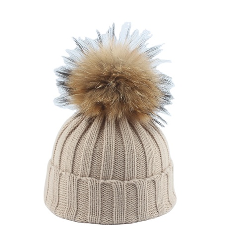 Nouveau chapeau de fourrure pour enfants bébé garçons filles boule d'hiver tricot fausse fourrure de raton laveur Pom Bobble Beanie chapeau hiver Ski chapeaux