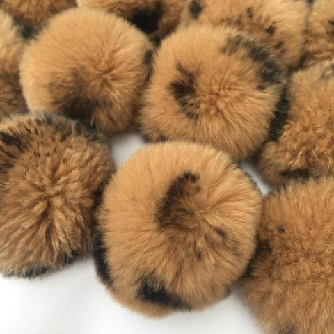 16 pçs/lote Padrão Leopardo Real Bola De Pele De Coelho Pom Pom 8cm Pompons De Pele Genuína para Keychain Skullies Gorros Malha Cap Shoes