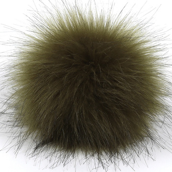 พู่ขนจิ้งจอกเทียมแบบทำมือสำหรับหมวกพร้อมกระดุมติดแบบกดขนาด15ซม.