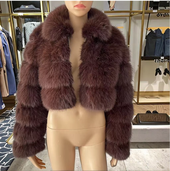 เสื้อโค้ทขนสุนัขจิ้งจอกขนปุยสั้นสำหรับผู้หญิงเสื้อแจ็คเก็ตแขนยาวมีขนปกเทียมสำหรับใส่ไปงานปาร์ตี้ในฤดูหนาว